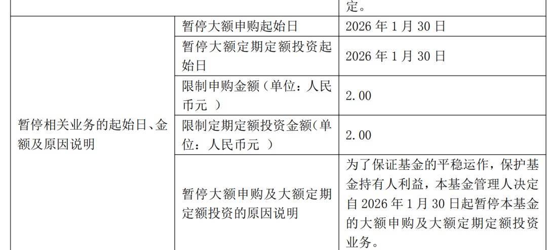 另外,华安标普全球石油指数证券投资基金(LOF)发布公告称,自1月30日起暂停大额申购及大额定期定额投资业务,每日累计投资限额降至2元。